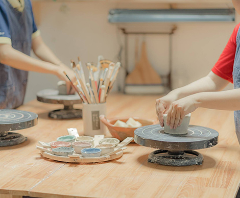 Đến đây, du khách sẽ được trải nghiệm làm gốm bắt đầu từ những công đoạn nhào nặn và tạo hình đất sét trên bàn xoay. Sau đó, tác phẩm sẽ được đem đi sấy khô. Cuối cùng, du khách sẽ tiến hành trang trí sản phẩm theo sự sáng tạo của mình và nhờ các cô chú nghệ nhân hoàn thành công đoạn cuối cùng như nung và tráng men bóng.